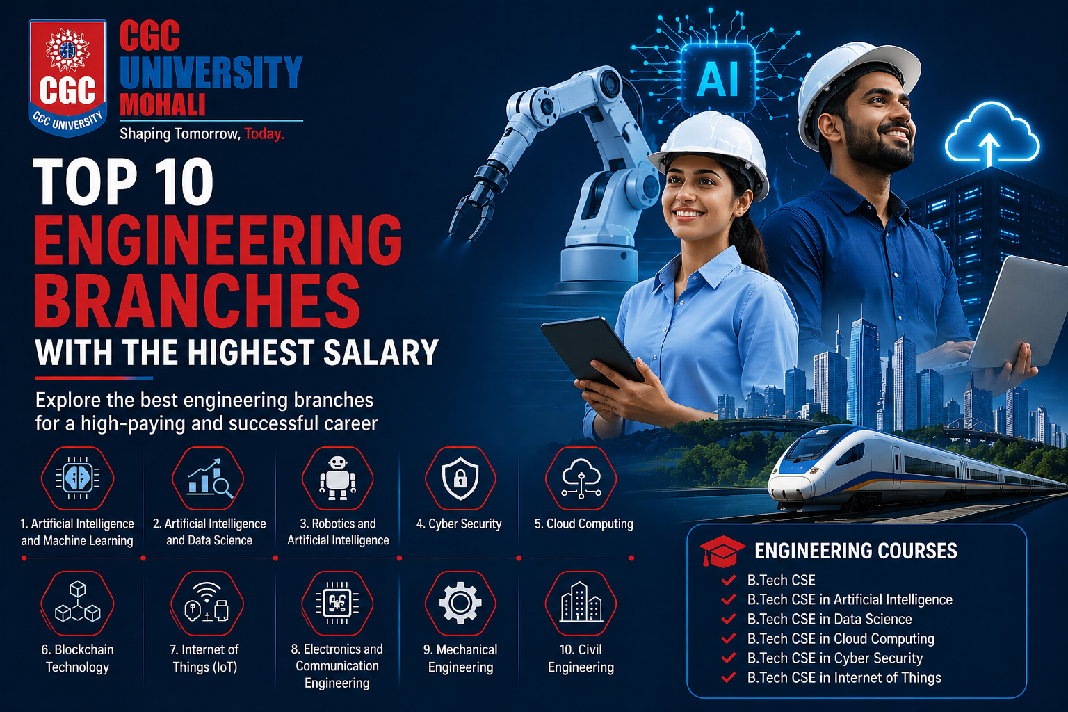 Engineering offers diverse career opportunities, but choosing the right specialization is the key to success. Courses like B.Tech CSE in Artificial Intelligence and Machine Learning, B.Tech CSE in Data Science, and B.Tech CSE in Cloud Computing provide excellent salary potential and future growth.