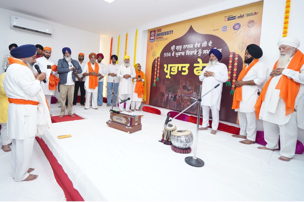 CGC UNIVERSITY, MOHALI SPREADS THE LIGHT OF DEVOTION AND HARMONY THROUGH PRABHAT PHERI In a heartwarming display of faith, unity, and cultural reverence, CGC University, Mohali, organized a serene and soulful Prabhat Pheri on campus to mark the sacred occasion of Shri Guru Nanak Dev Ji’s Parkash Purab. The early morning event filled the campus with divine hymns, warmth, and an air of devotion, bringing together students, faculty, and staff as one harmonious community. Led by melodious kirtan and the chanting of Gurbani, the procession resonated with the values of peace, humility, and service — the eternal teachings of Guru Nanak Dev Ji. The sight of students walking hand in hand with faculty, their voices rising in unison to spread the message of love and compassion, was a moving reminder that education at CGC University, Mohali extends far beyond the classroom — it nurtures the soul as much as the mind. The event beautifully reflected the university’s belief in inclusivity and spiritual growth, creating an atmosphere of gratitude and togetherness. As the morning sun rose over the campus, it symbolized not just a new day but a renewed commitment to the timeless ideals of kindness, unity, and truth. CGC University, Mohali, continues to embrace and celebrate the rich tapestry of Indian culture and values, ensuring that every student experiences education as a journey of intellect, empathy, and inner light.